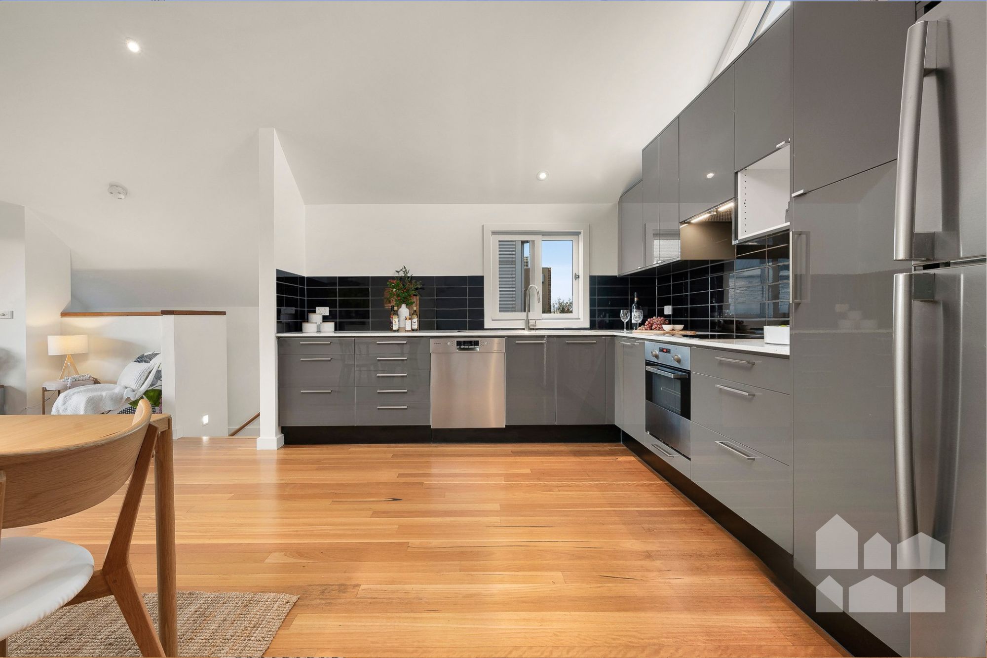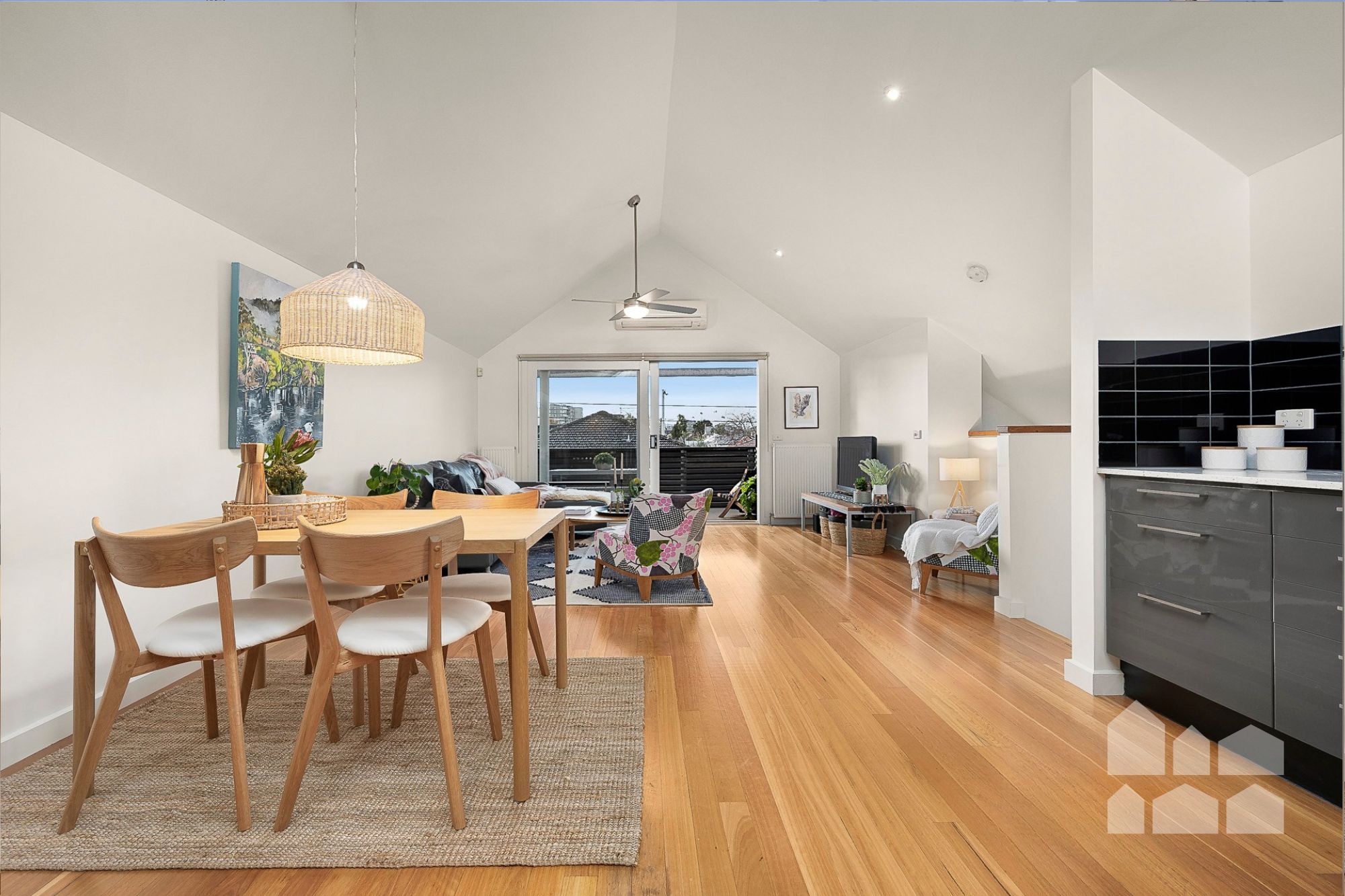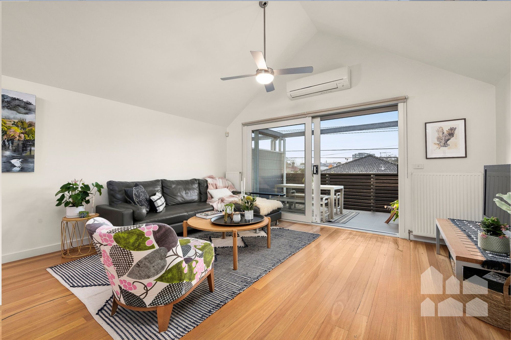 – split-system air conditioner, polished floorboards