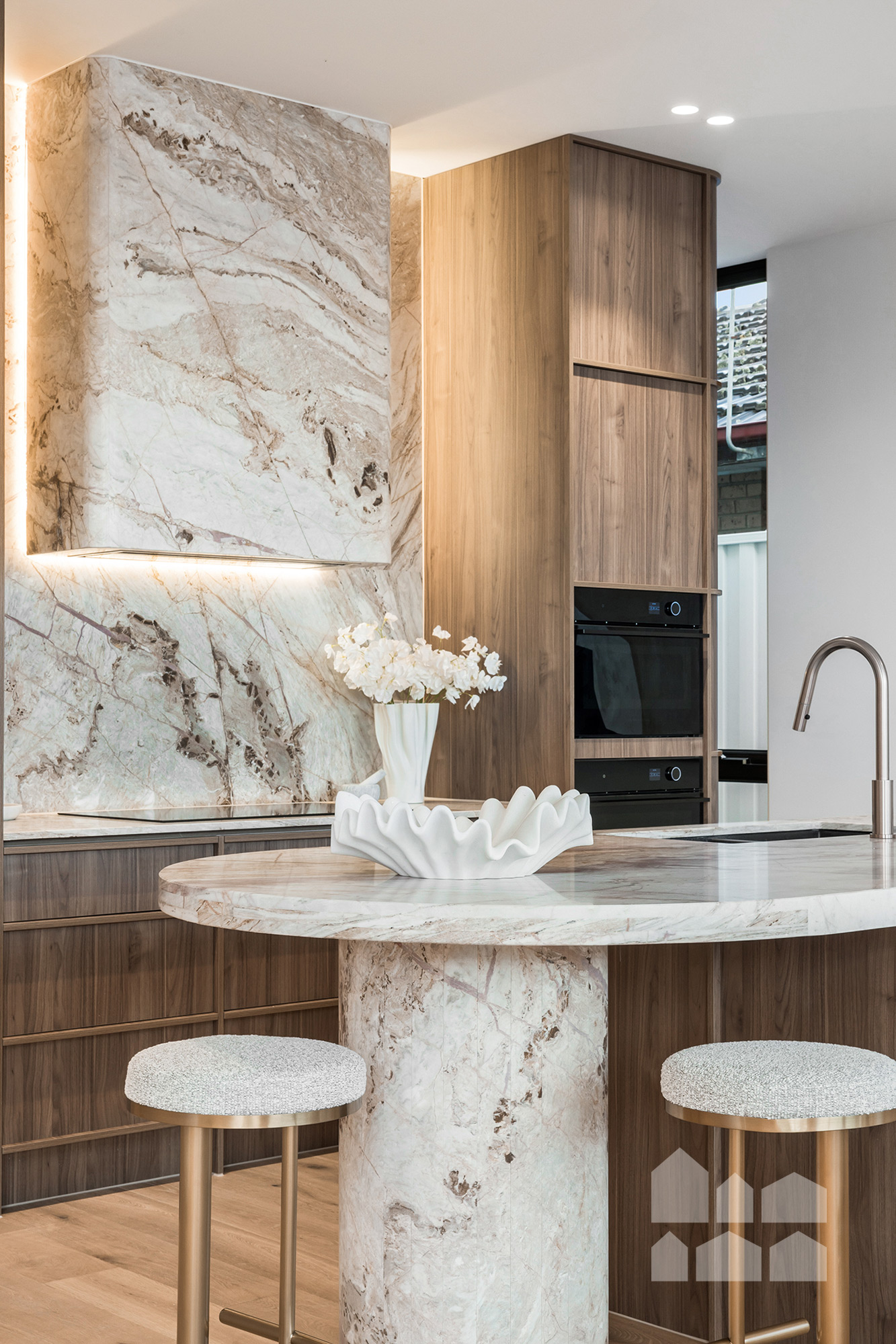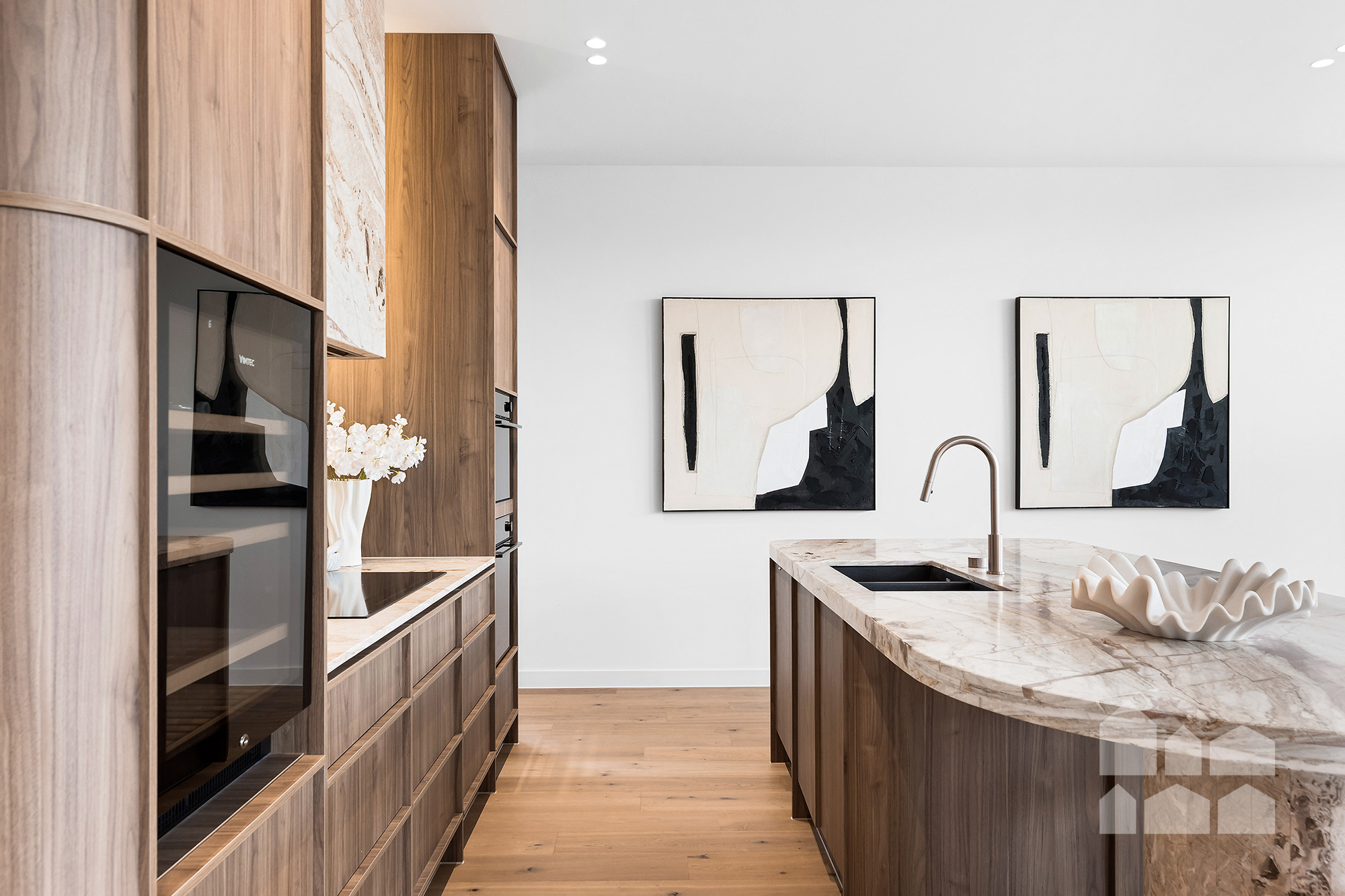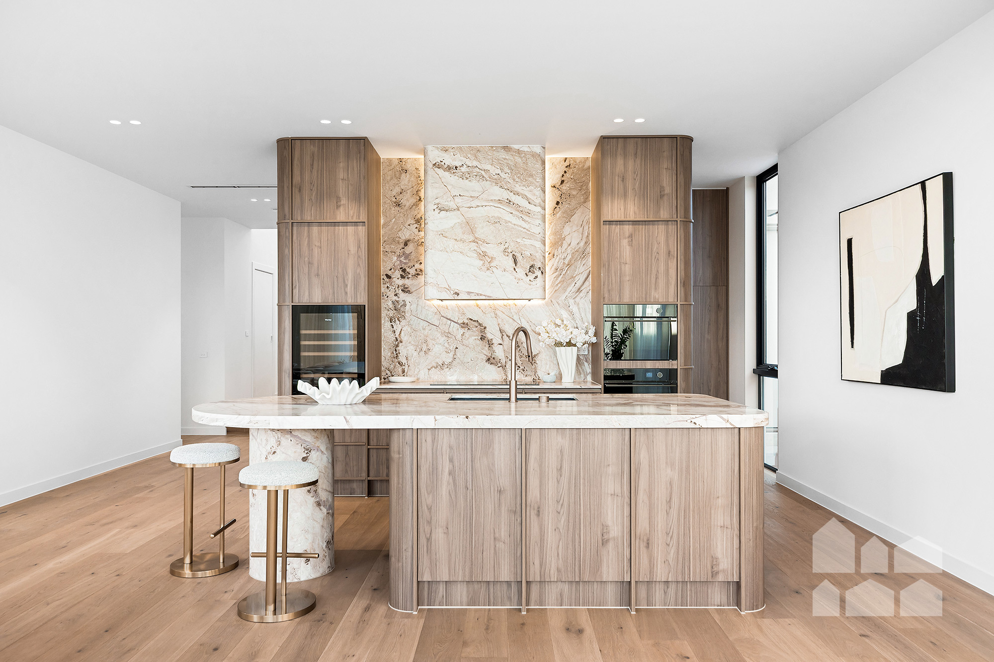 -breathtaking open-plan living – spectacular feature ceiling + large dining and living zones + designer kitchen with butler’s pantry, marble benchtops, Vintec 60-bottle wine fridge, and high-end Bosch and Fisher & Paykel appliances