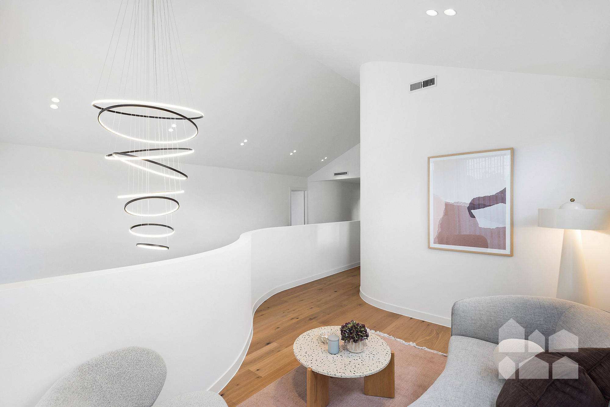 -two additional living areas – elegant sitting room on the lower level + upstairs loft-style retreat zone