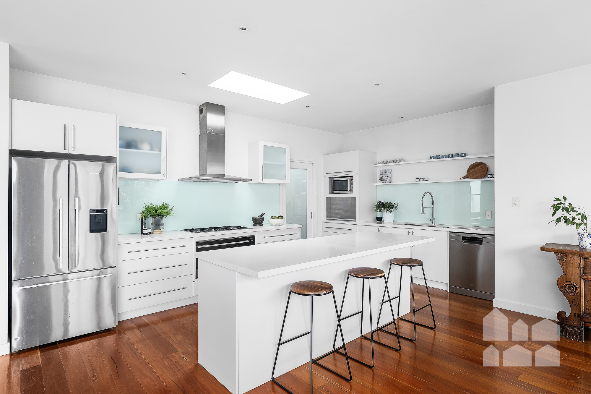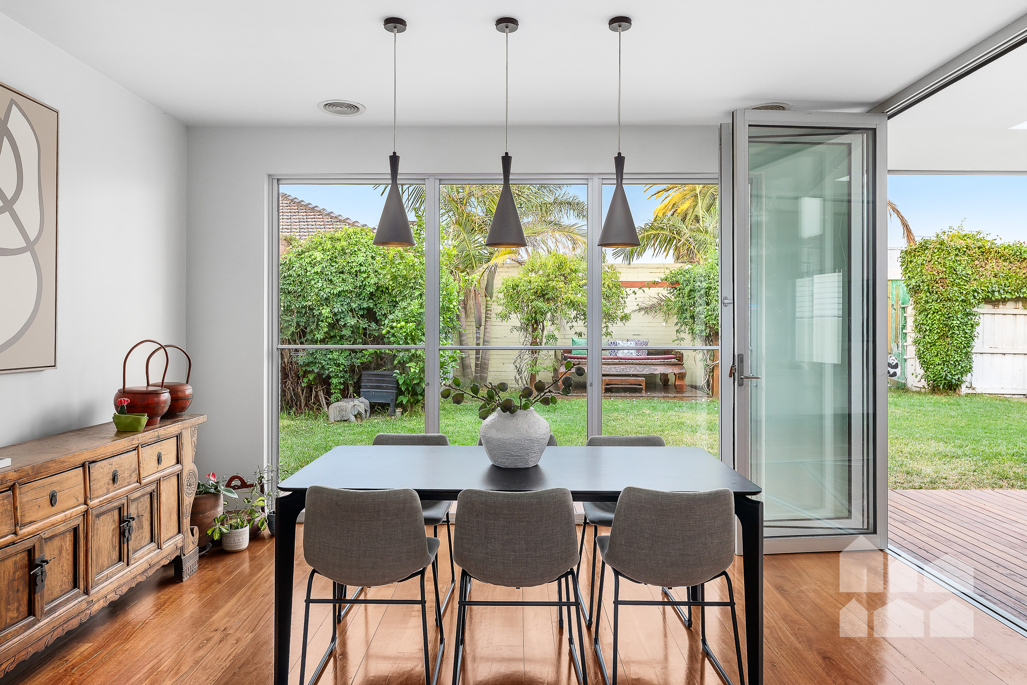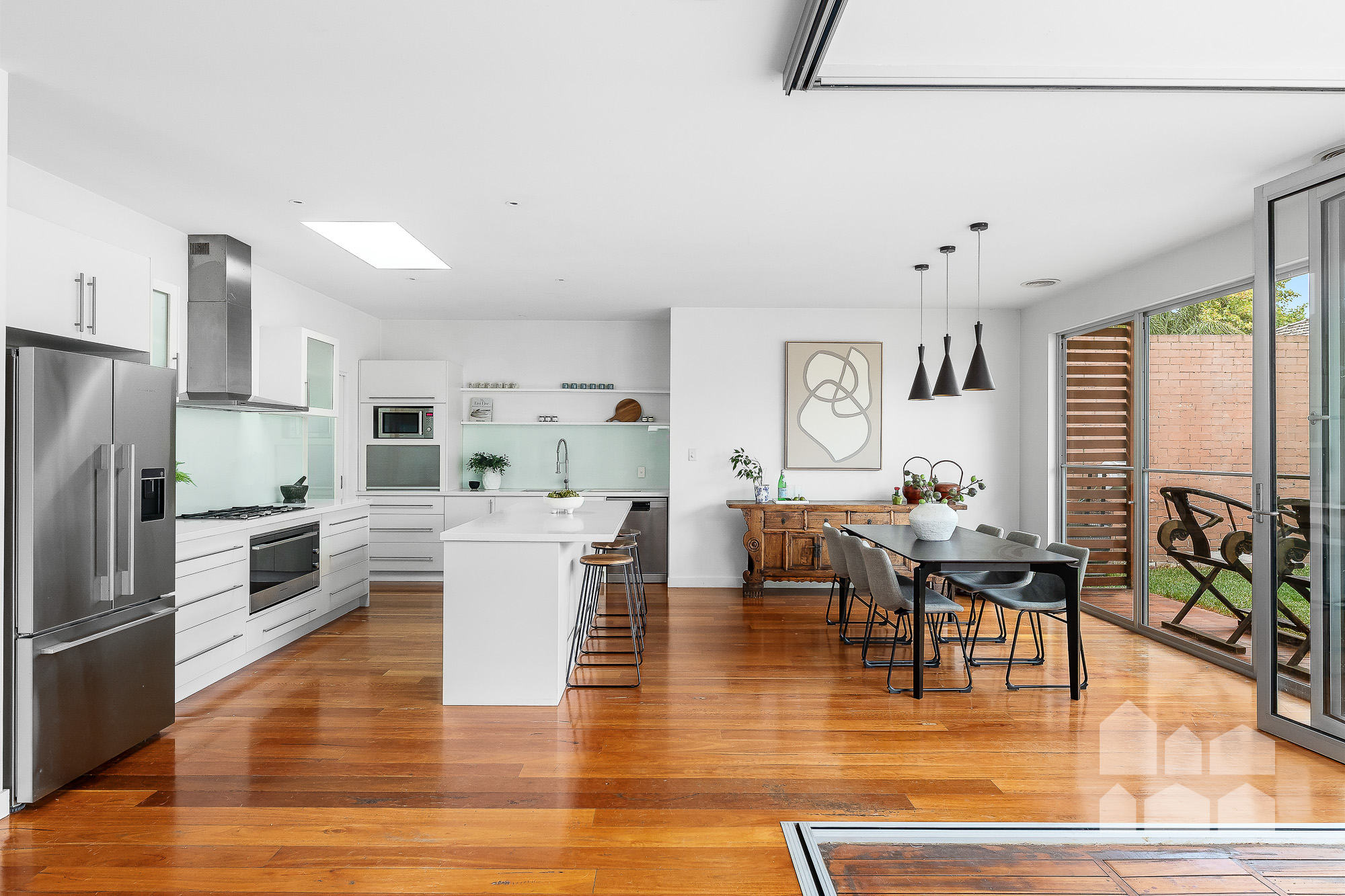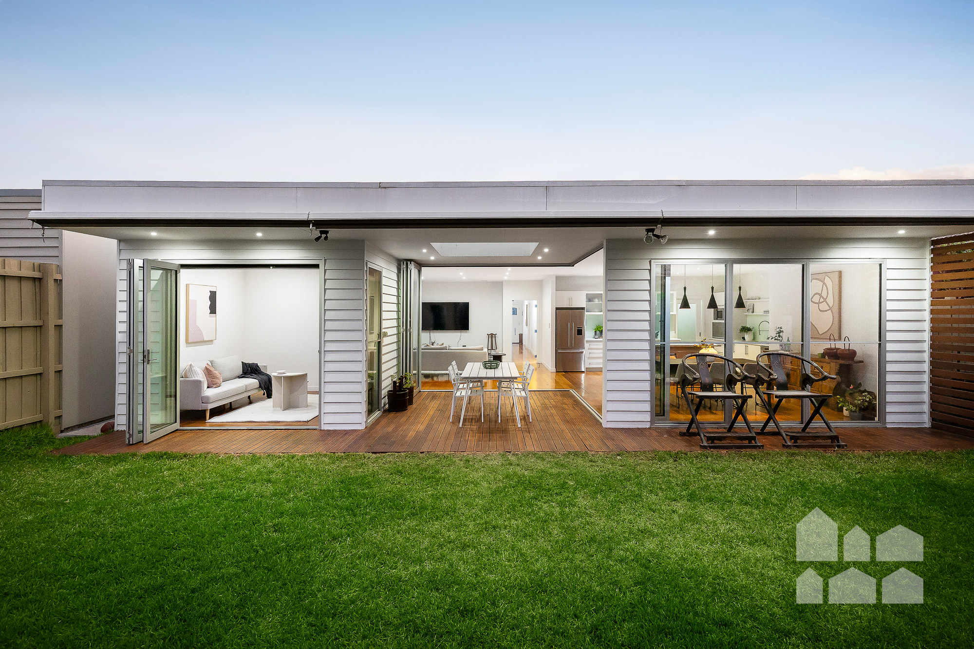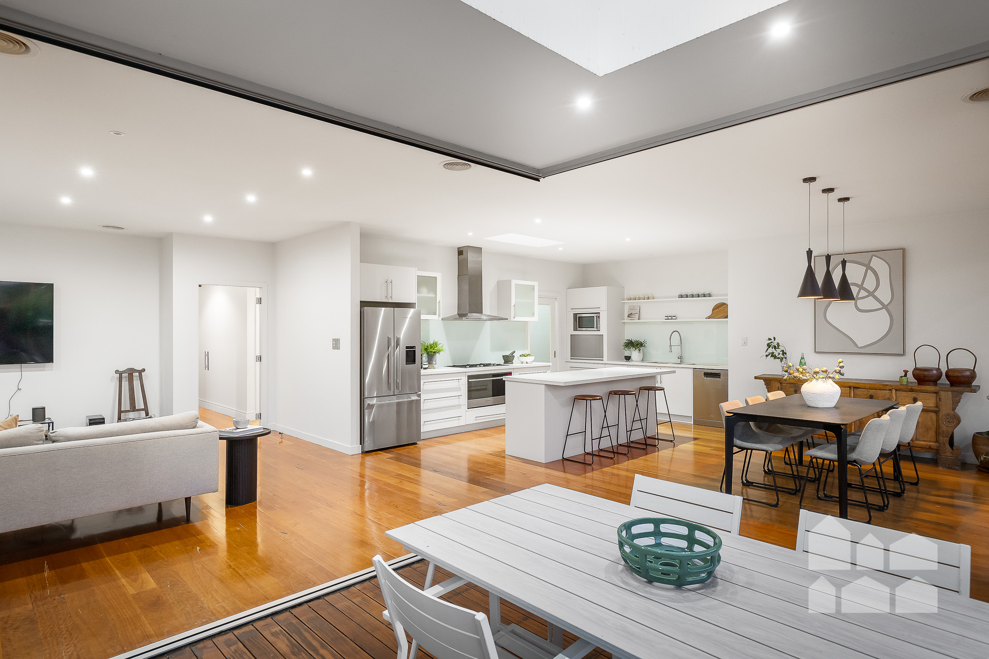 – folding doors retract to connect the open-plan zone to the sky-lit covered deck for effortless alfresco entertaining and seamless indoor/outdoor living