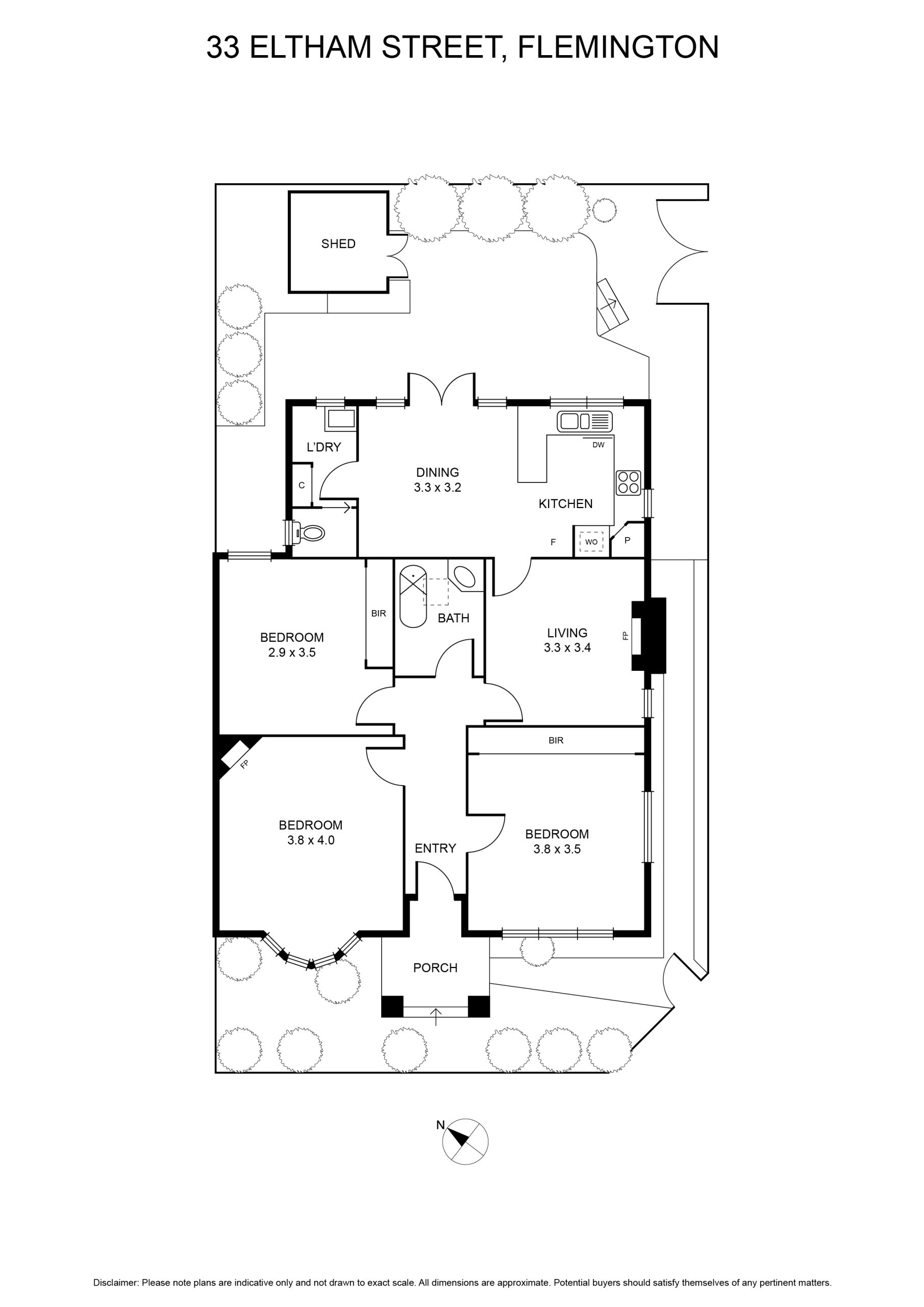Step into the serene heart of Flemington and discover the extraordinary charm of 33 Eltham St. This remarkable solid brick residence, nestled in a quiet corner, offers an enchanting blend of timeless elegance and contemporary living. As you enter, be captivated by the decorative ceilings, grand fireplaces with decorative hearths and mantels, picture rails and stained-glass windows that grace this home. The front bedroom boasts a distinctive bay window and an impressive fireplace, while two additional bedrooms feature built-in wardrobes for your convenience. The living room is centered around a gorgeous fireplace which provides a cozy retreat separate from the kitchen/dining space. The kitchen boasts a wraparound bench, oven, gas cooktop, and a handy dishwasher. Pamper yourself in the bathroom with its decorative tilework and a shower over a freestanding clawfoot bathtub. Enjoy the convenience of a separate laundry area.