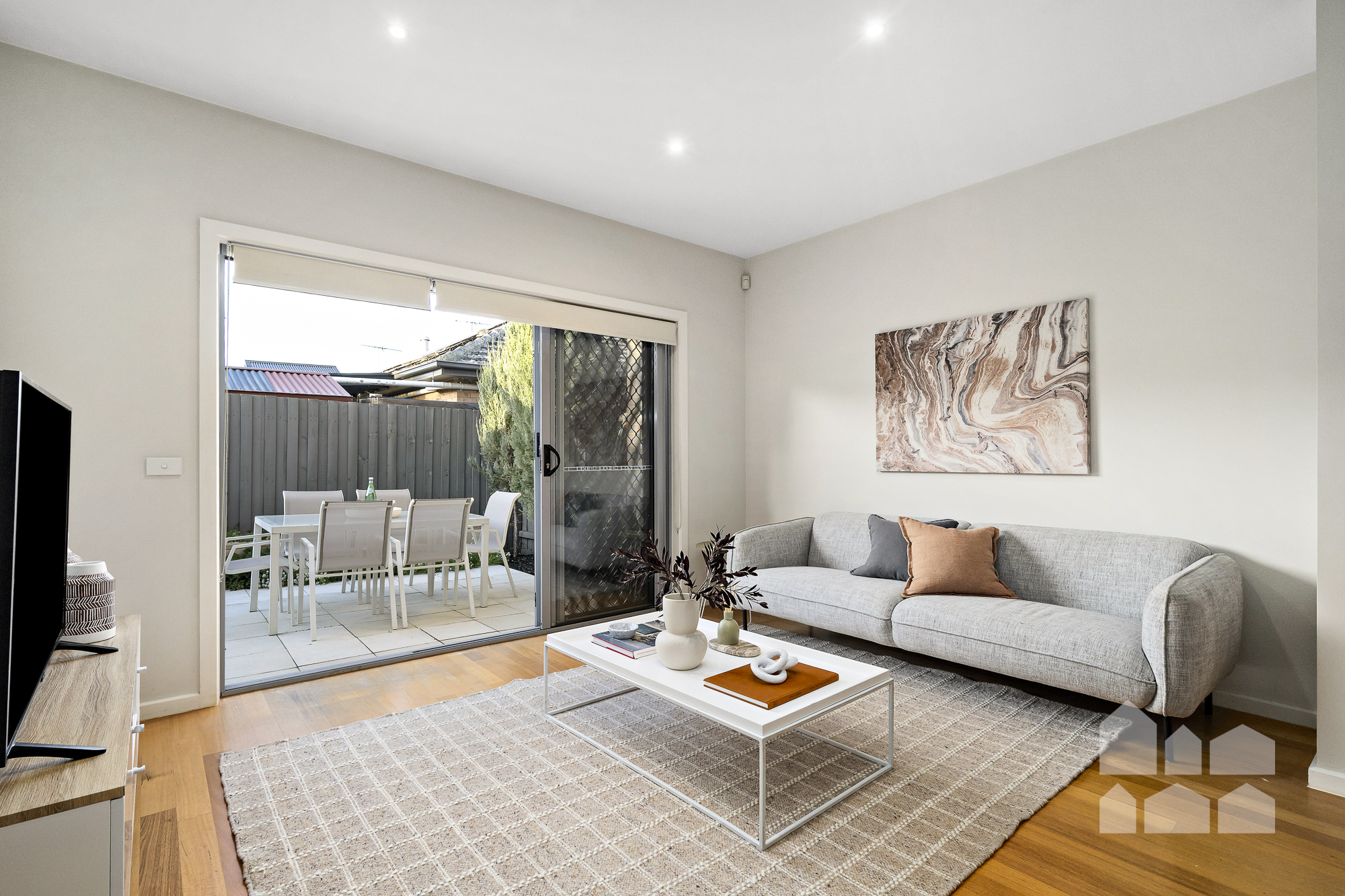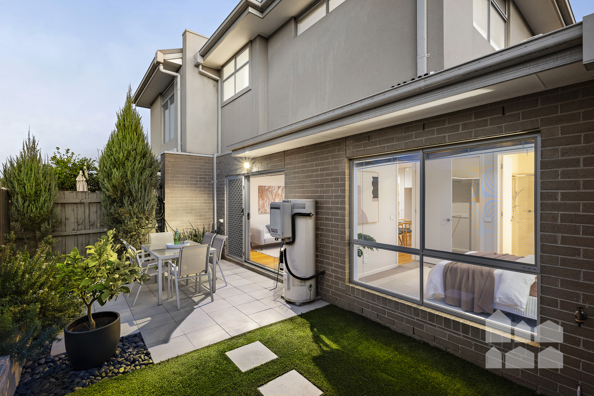 – paved alfresco entertaining patio and neat-as-a-pin back garden for low-maintenance outdoor living