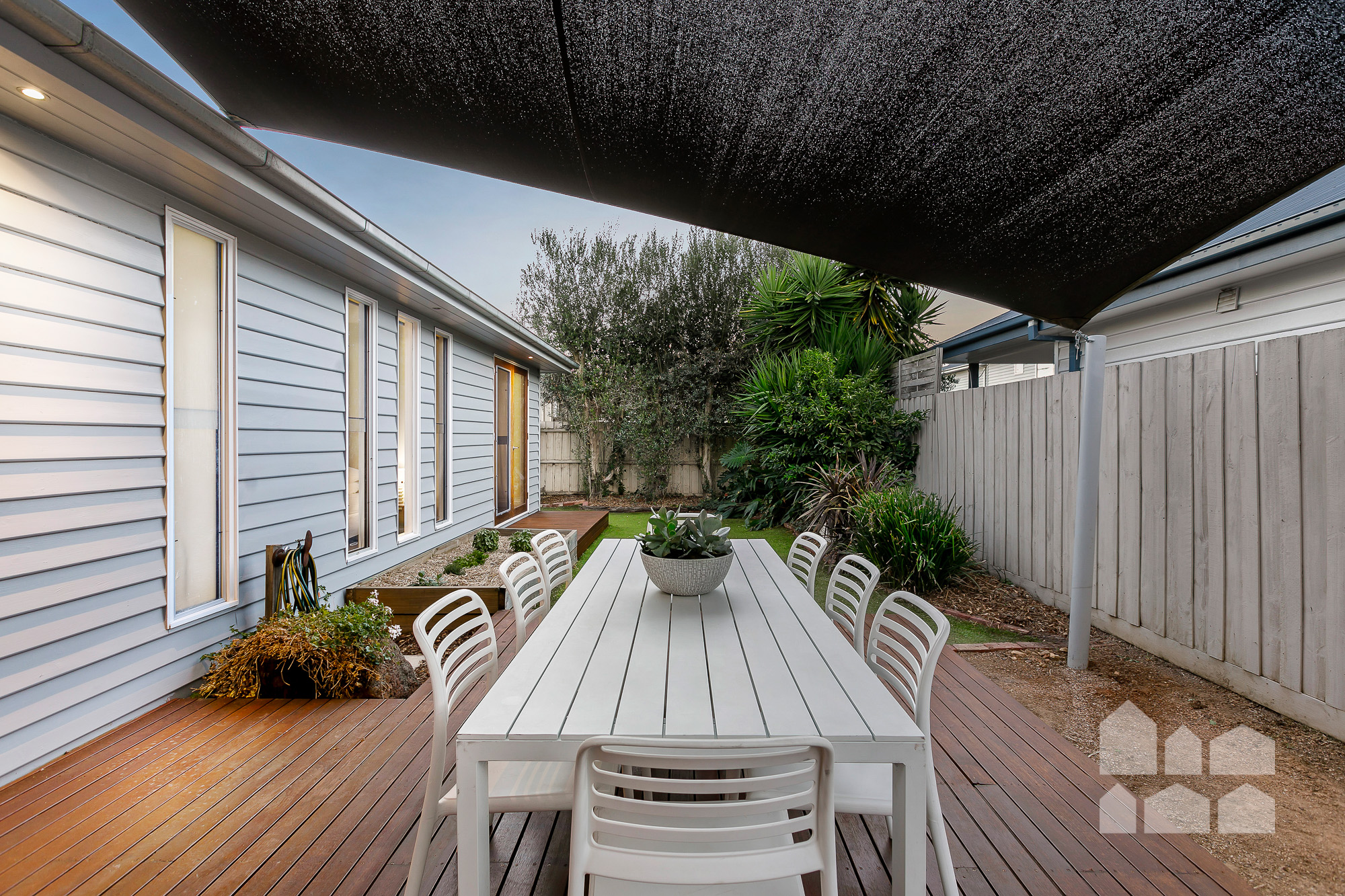 – generous, low-maintenance backyard with large, shade-sailed entertaining deck, established garden beds and easy-care synthetic turf