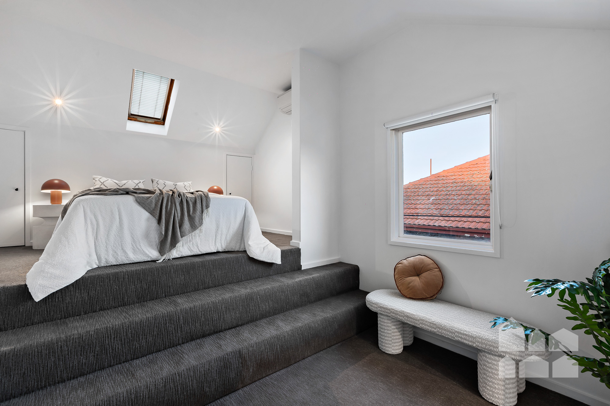 -big, split-level main bedroom upstairs with built-in robe + second bedroom downstairs