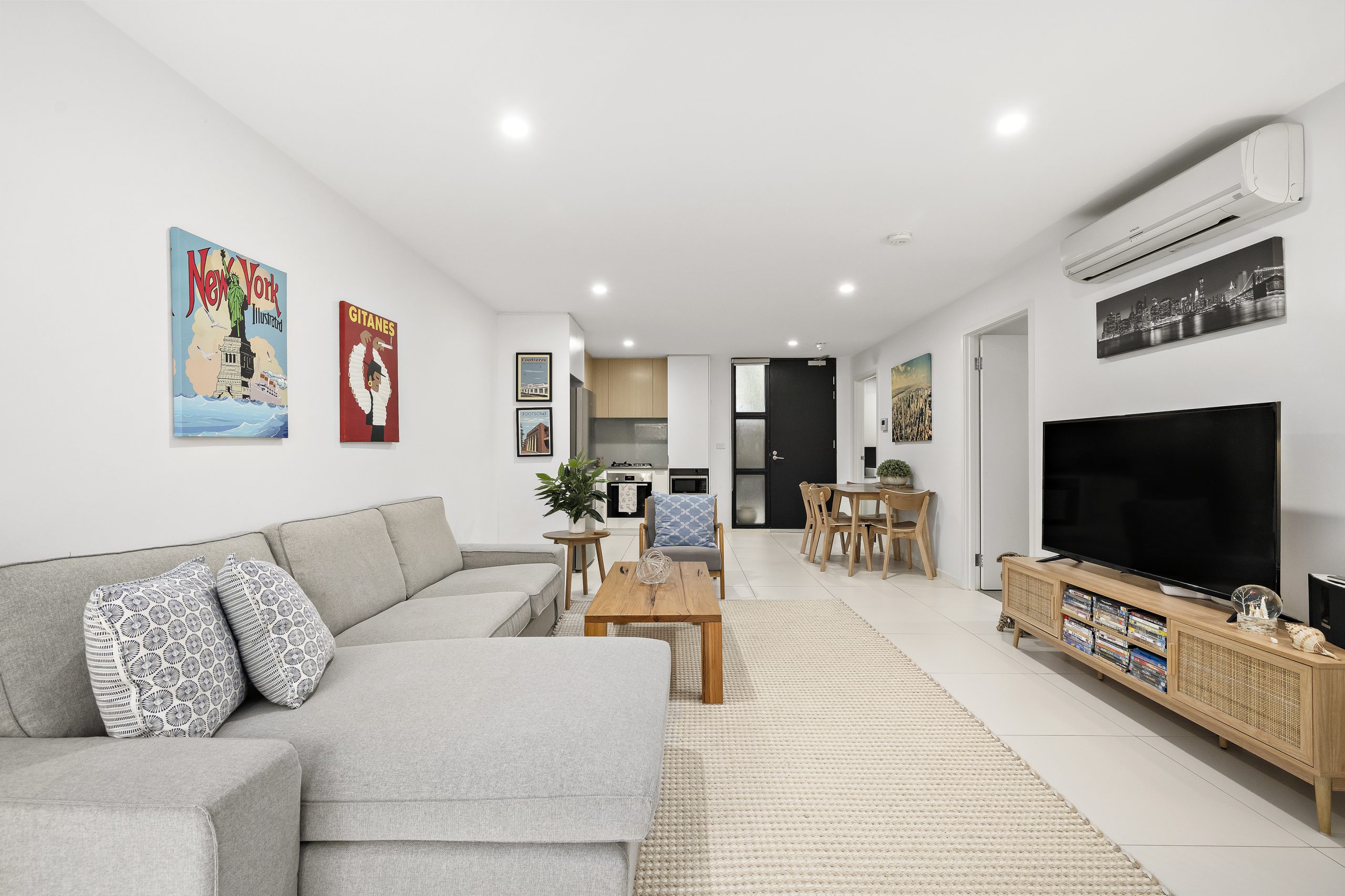 Modern apartment set at the rear of a quiet boutique block, this contemporary two-bedroom, two-bathroom home with secure parking boasts convenience and tranquillity all in one.
