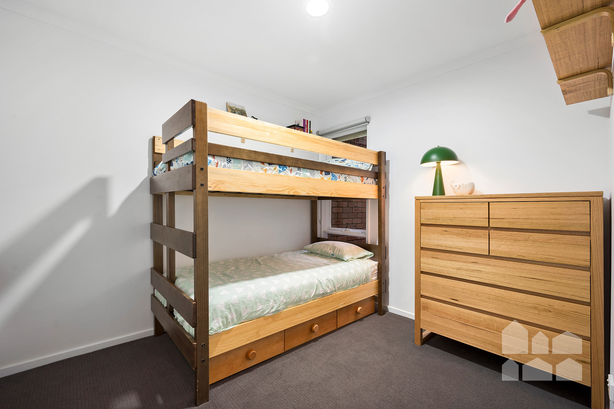 _Two large bedrooms with built-in robes quietly situated on the lower level, including a north-facing master with front garden views