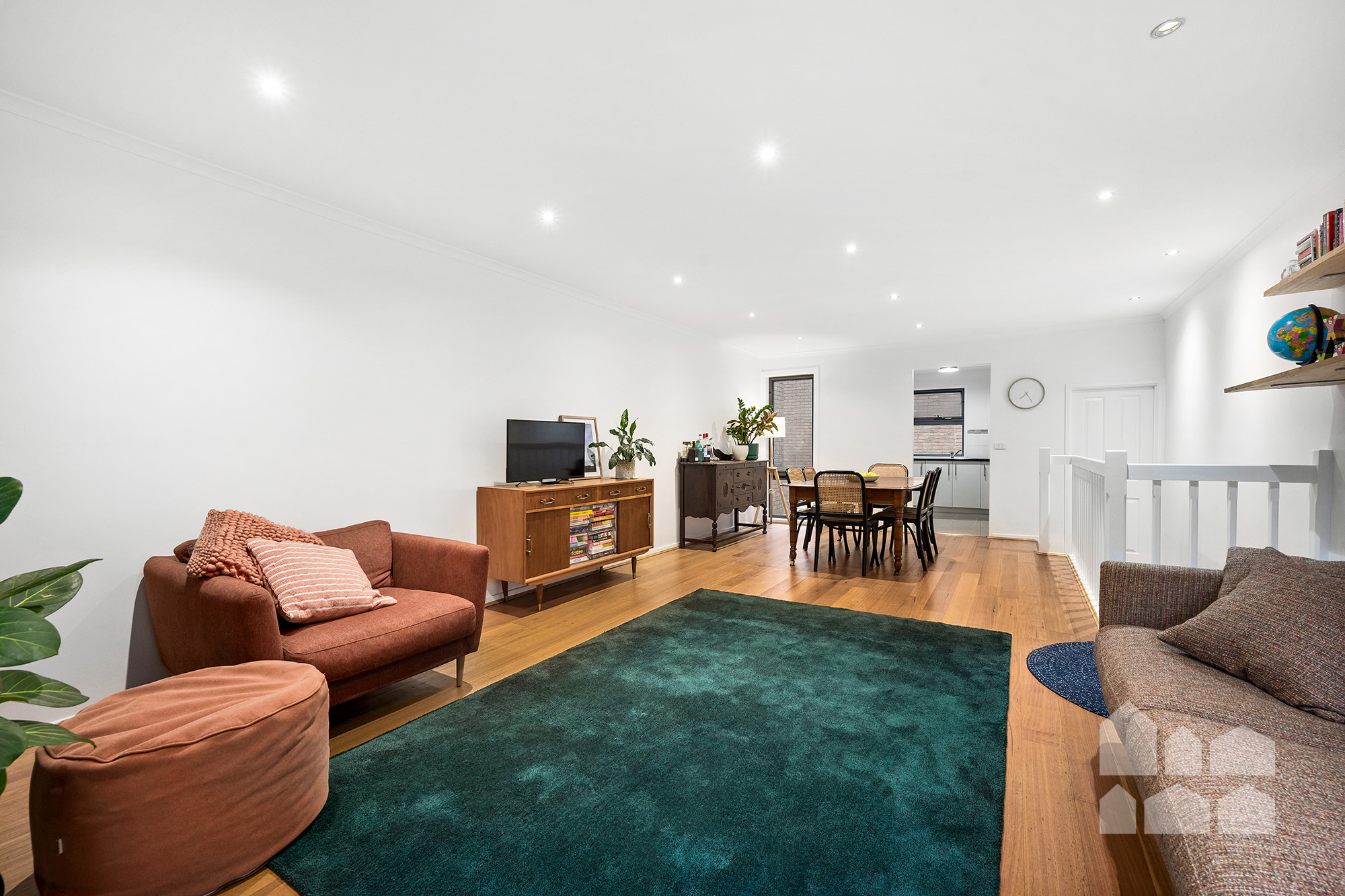 _Open-plan kitchen/living/dining situated on the upper level to capture views of Footscray Park from the covered north-facing balcony