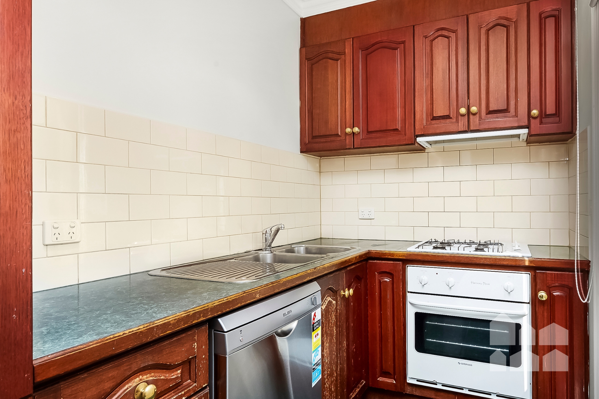 – light and bright galley style kitchen including gas cooktop, dishwasher and ample cupboard space
