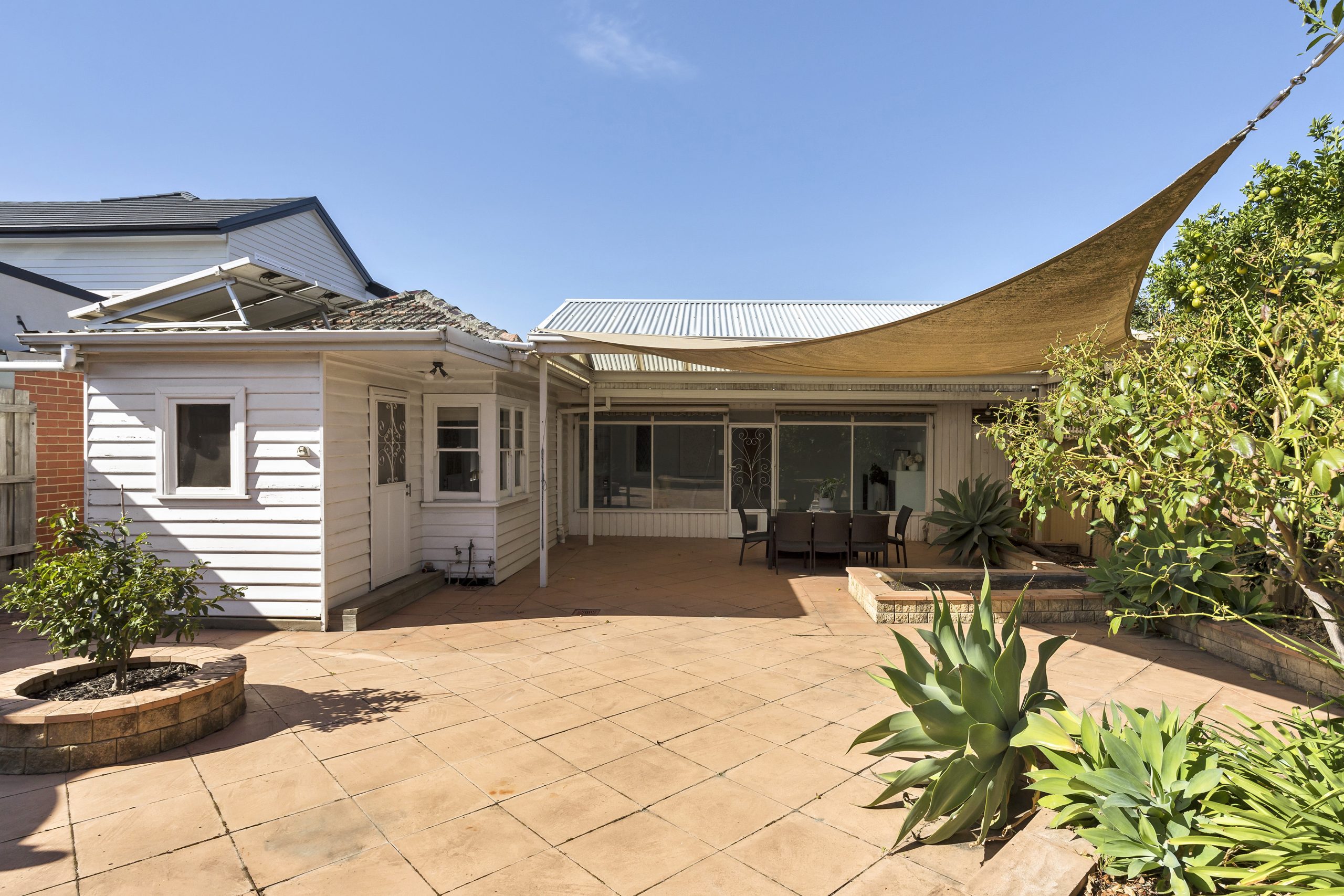 – sun-drenched backyard with alfresco entertaining