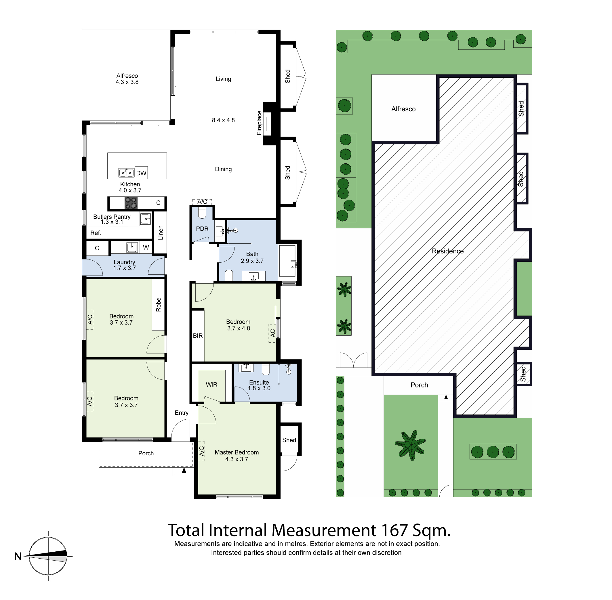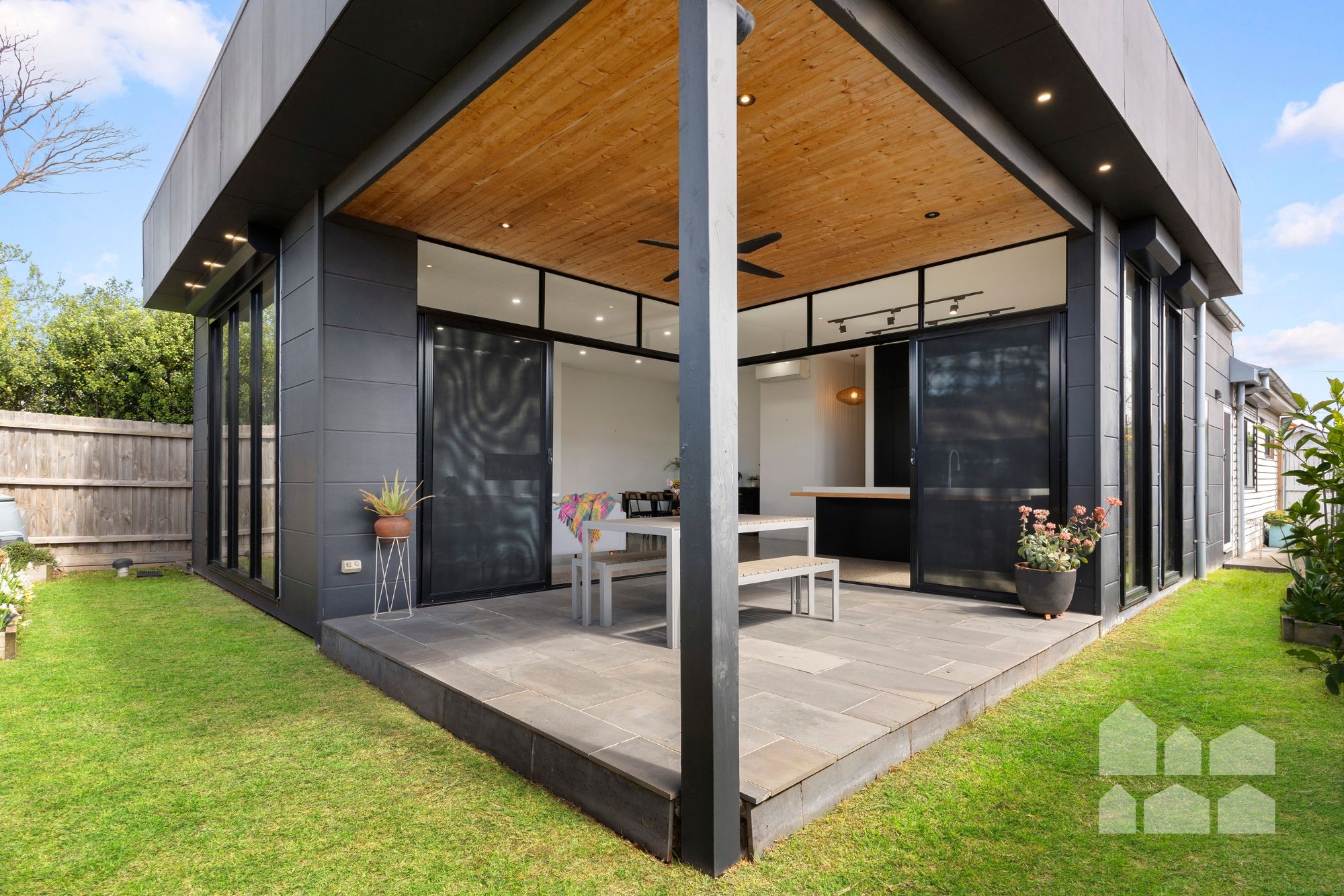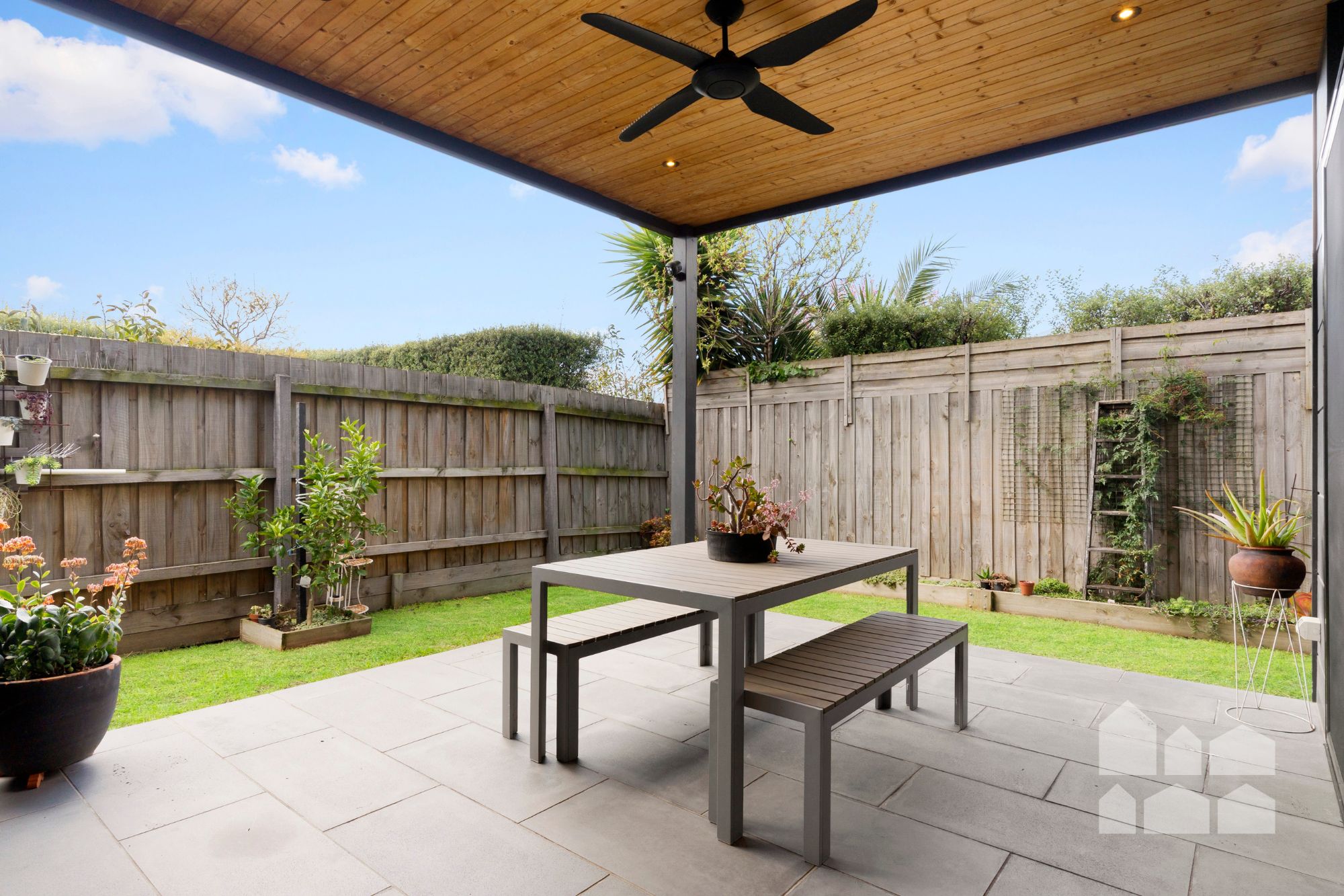 · Covered outdoor entertaining area + garden sheds
