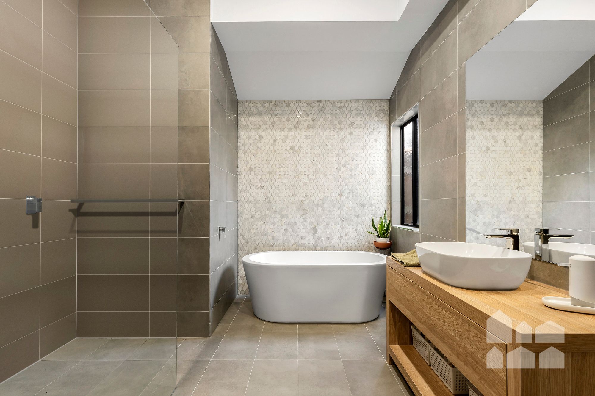 A master suite with ensuite and three additional bedrooms ensure room for all, while the main bathroom impresses with warm timber finishes and a freestanding tub. Outside, enjoy covered alfresco dining under a timber-lined ceiling, surrounded by thriving low-maintenance gardens.
