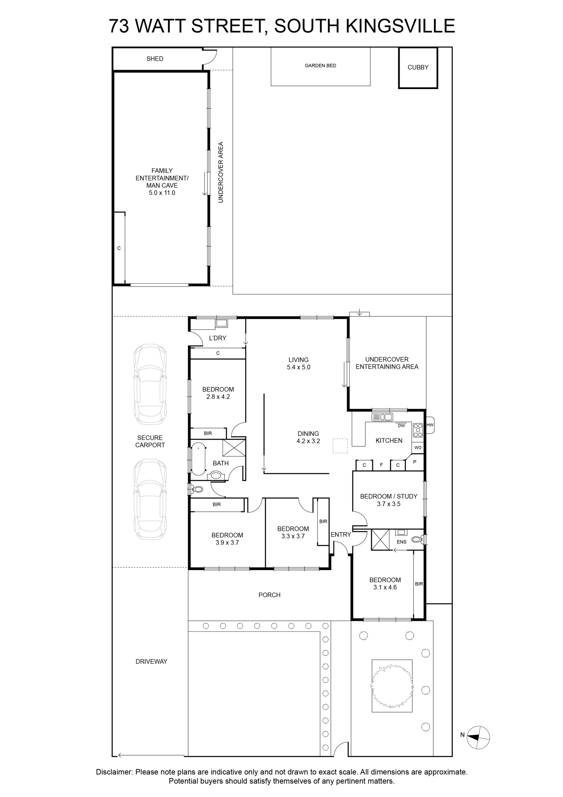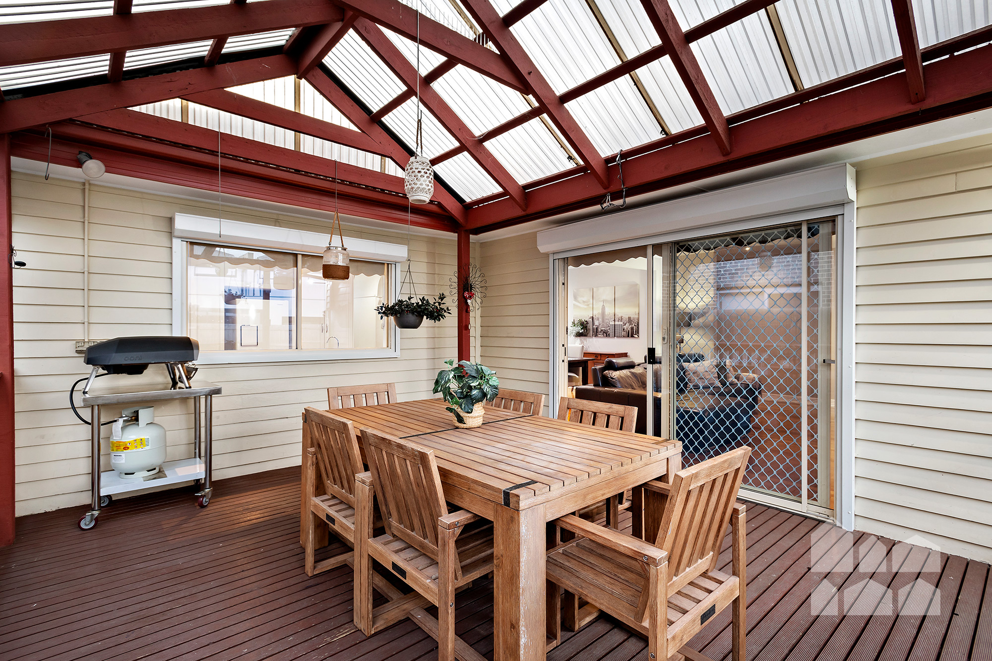 -covered entertaining deck for easy alfresco entertaining + huge backyard with garden bed offering a dream outdoor play space for the kids to enjoy