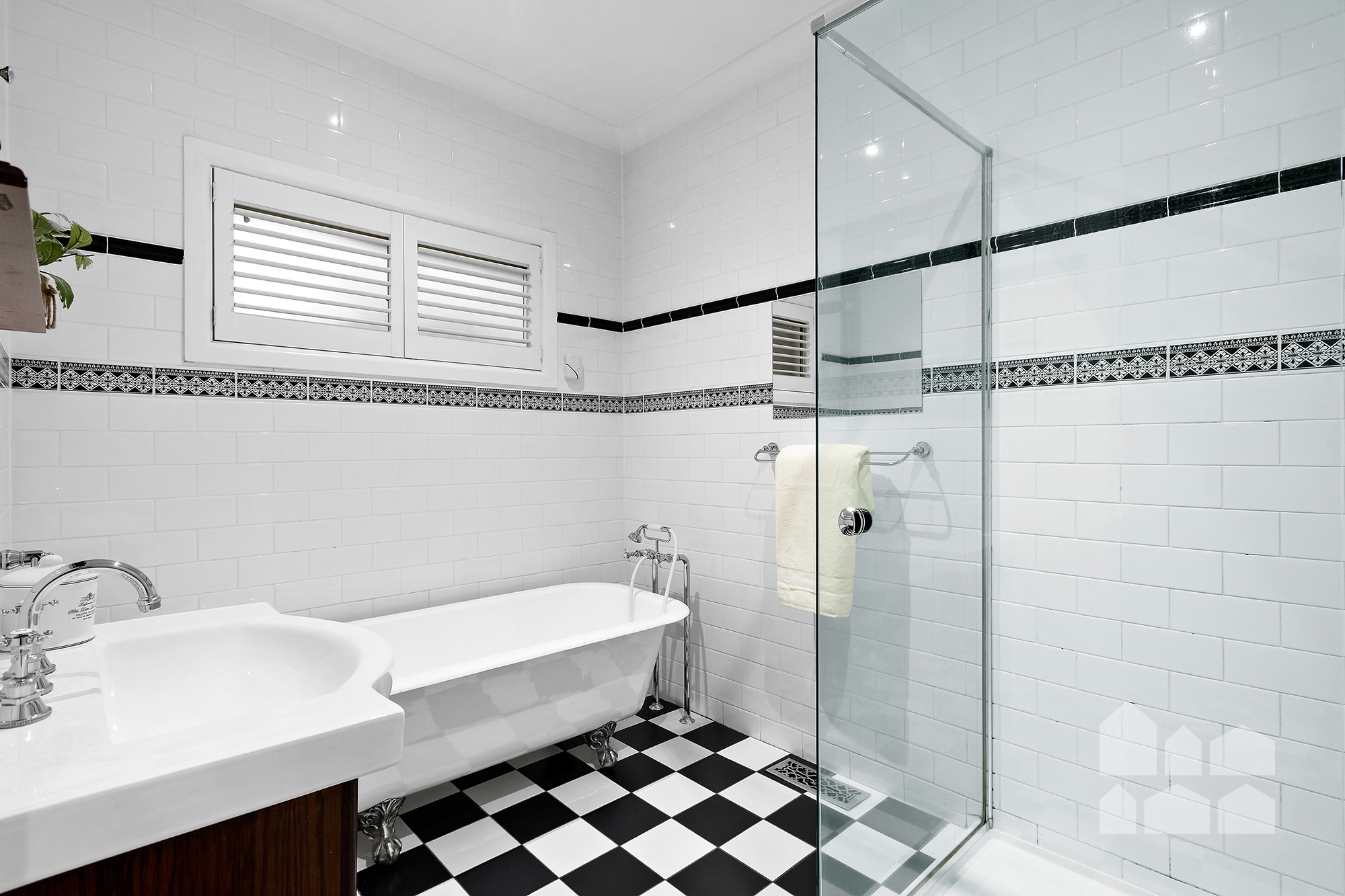 -heritage-inspired family bathroom with shower, clawfoot bath and separate toilet