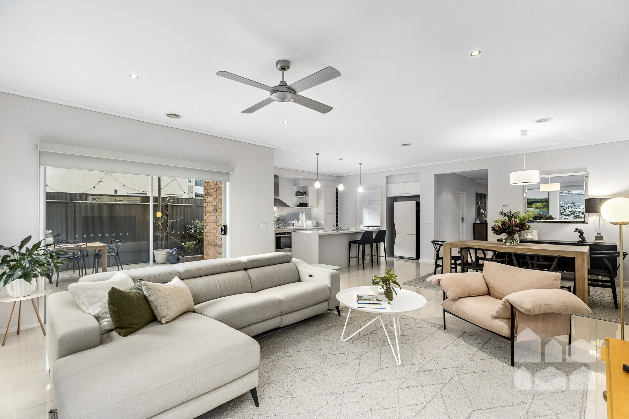 – Sunny open-plan living showcasing light-filled living and dining zones