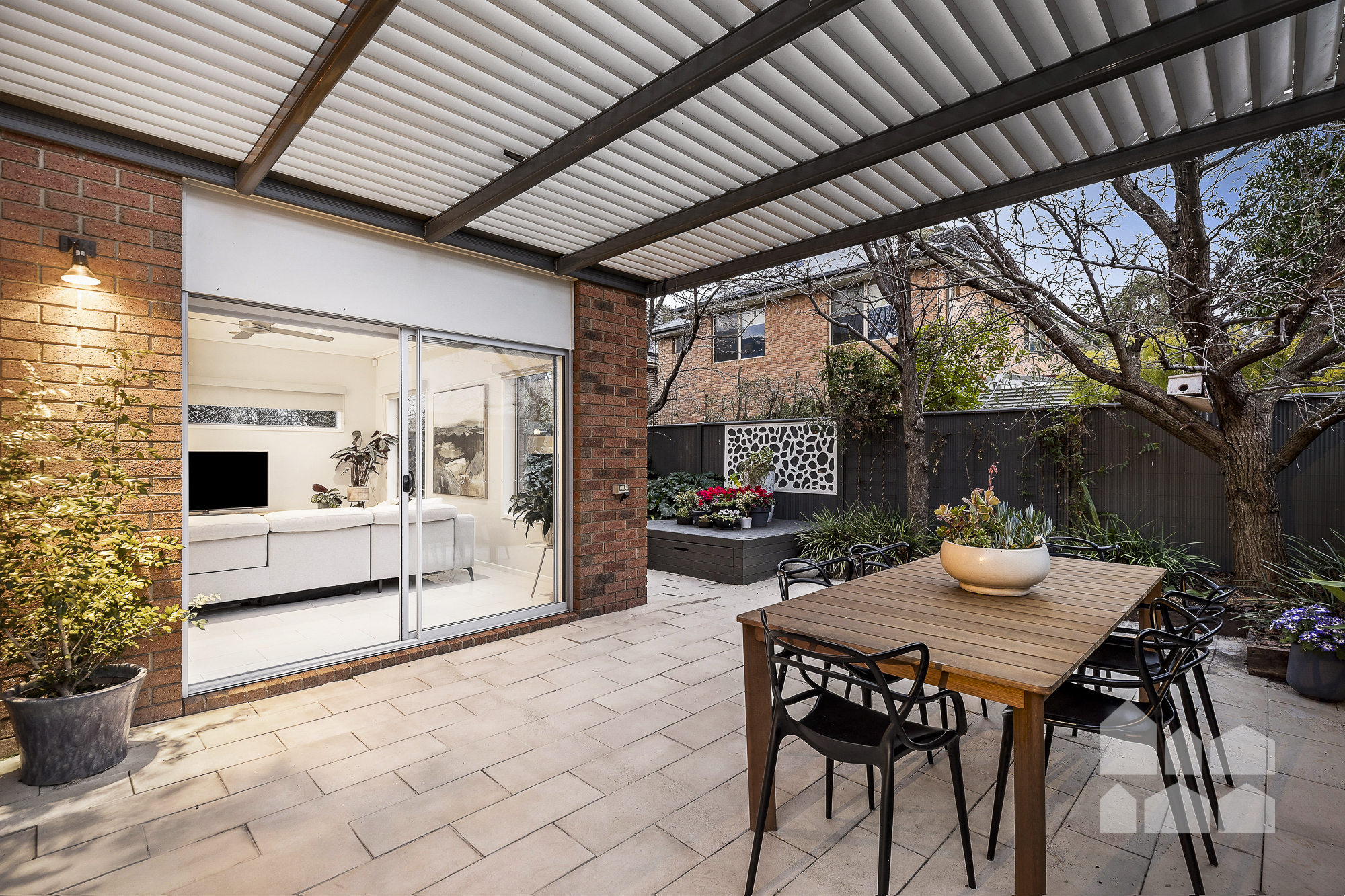 – leafy entertainer’s courtyard garden with covered patio for all-weather entertaining