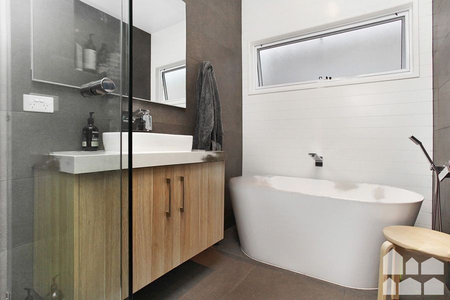 – Feature stone splashbacks with large windows bringing in natural outlooks