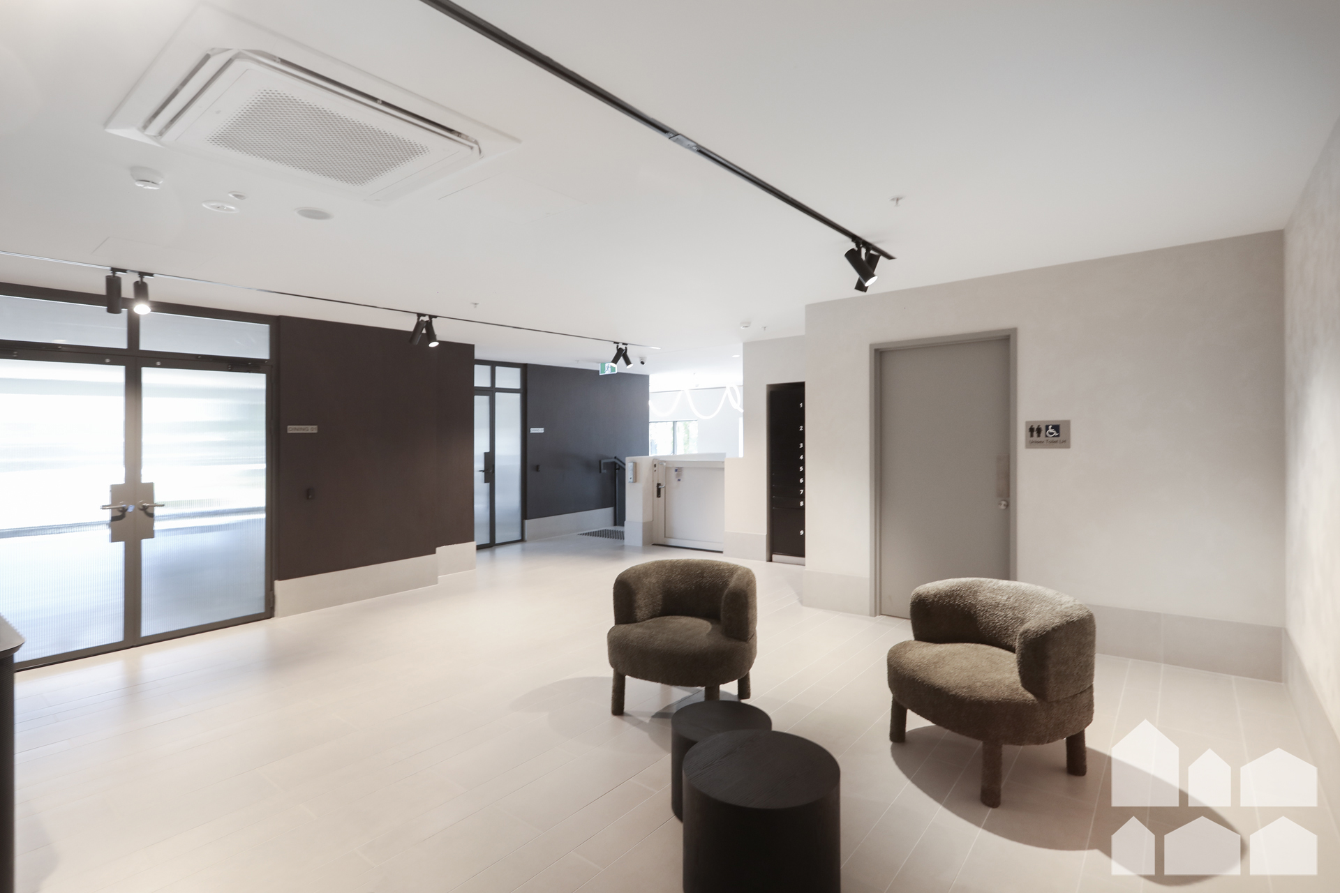 – Large communal outdoors terrace + indoor function/dining space