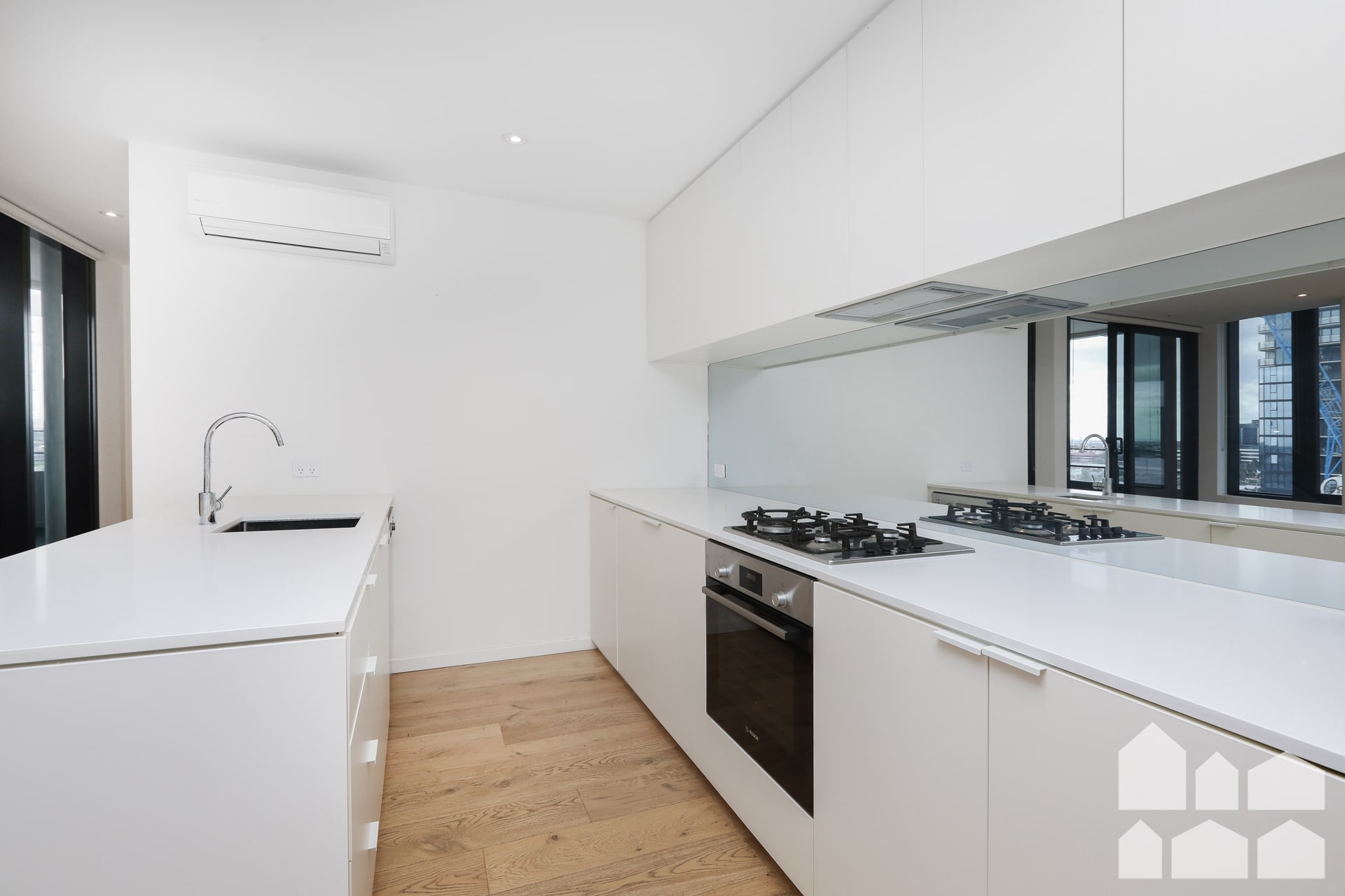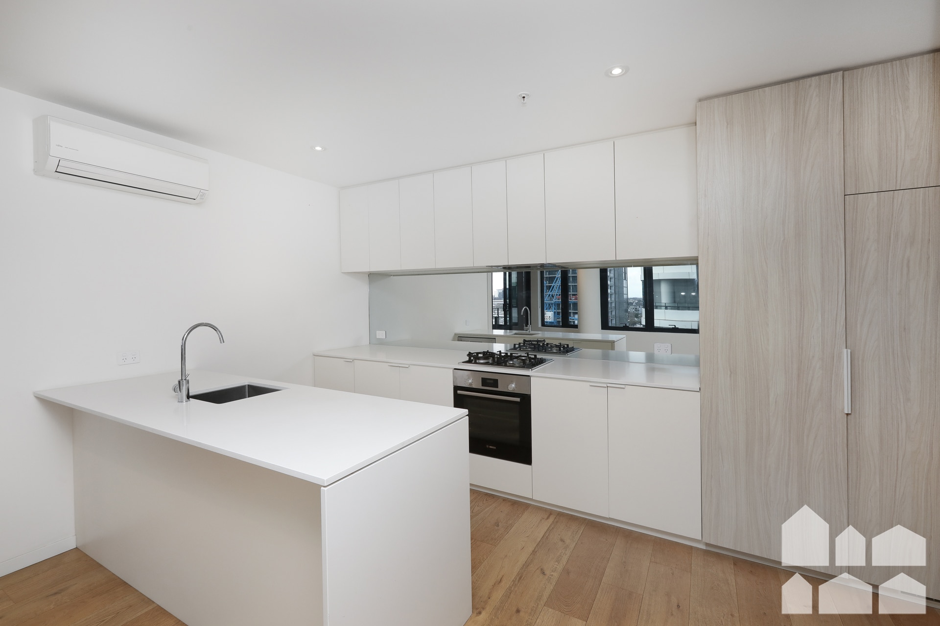 – Well equipped kitchen with ample cupboard and bench space, dishwasher, gas cooktop and cupboard for fridge (fridge not included) for a seamless look