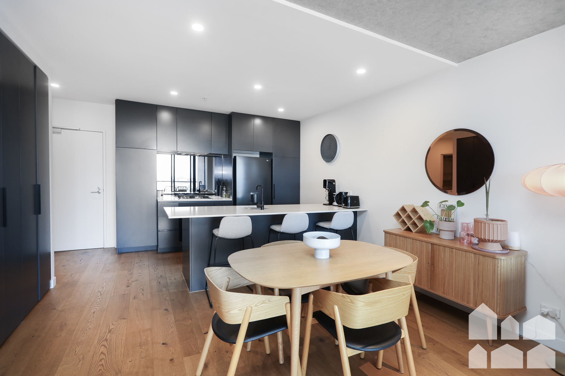 – Modern kitchen with island bench and ample cupboard space