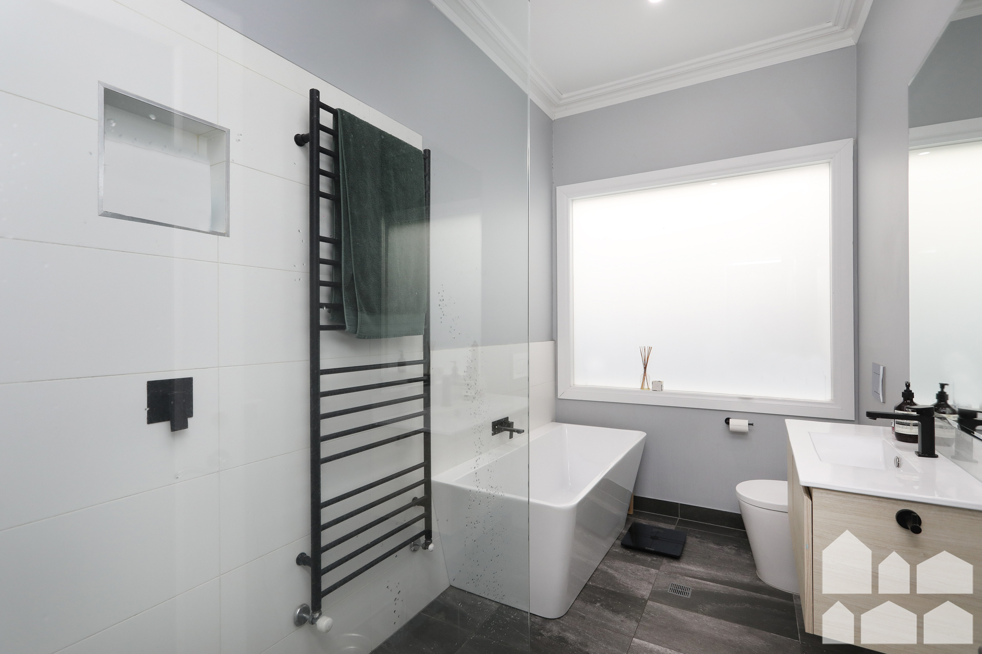– Hydronic heating throughout + split systems for cooling providing year round comfort