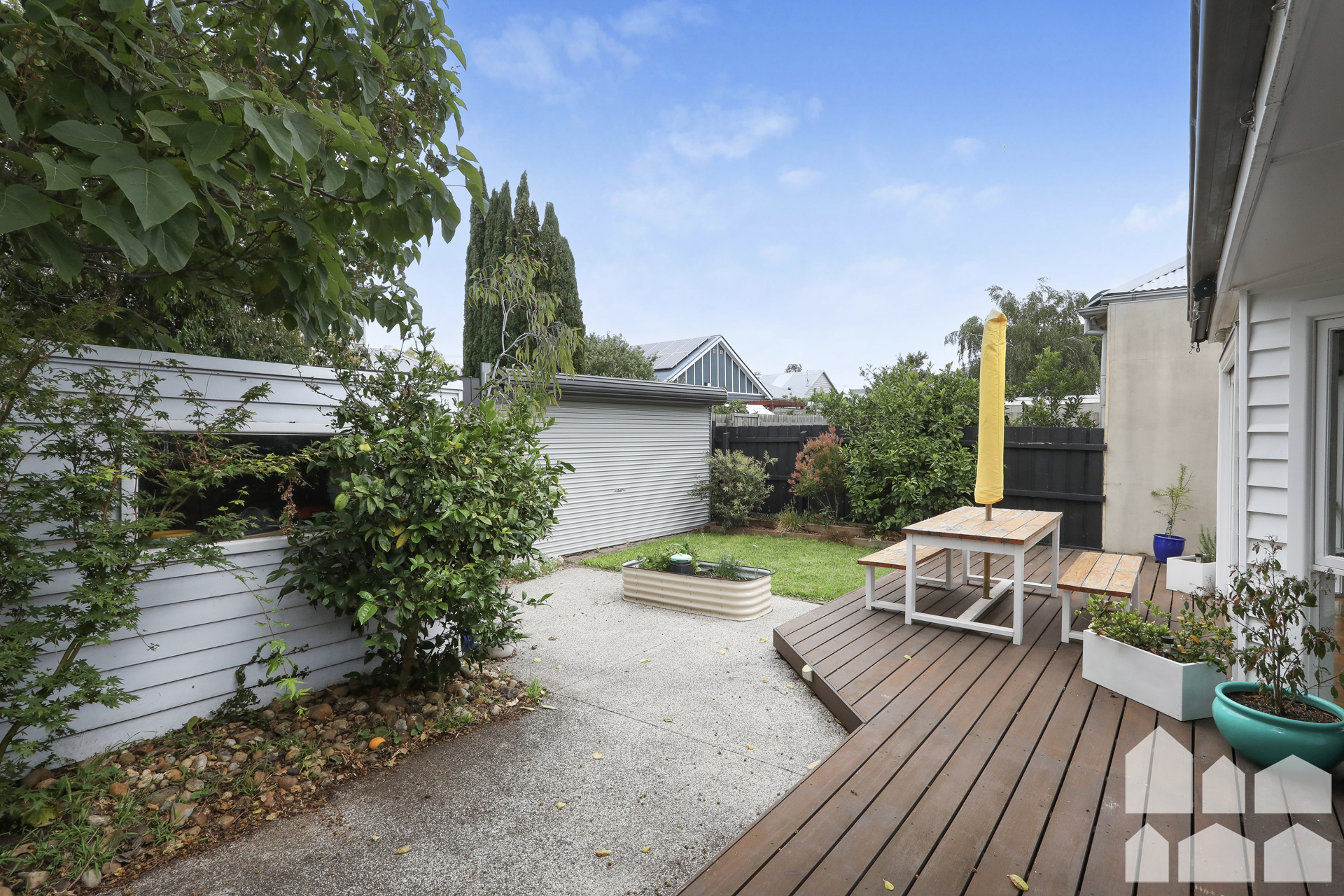 – An outdoor retreat offers a rear deck, landscaping, garden shed and option for an off street car park via laneway
